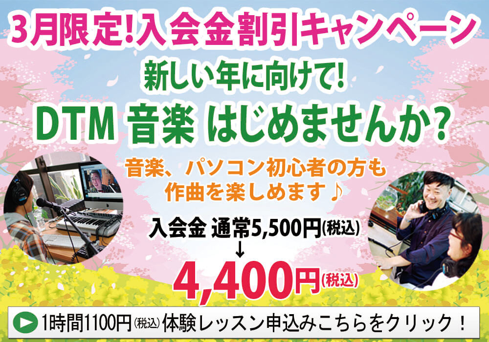 大阪北堀江校で実施する1回完結、1時間もしくは3時間でDTMに関する知識やテクニックを学べるセミナーです。DTM初心者の方や、スキルアップを目指す方も、目的にあわせて受講可能です!